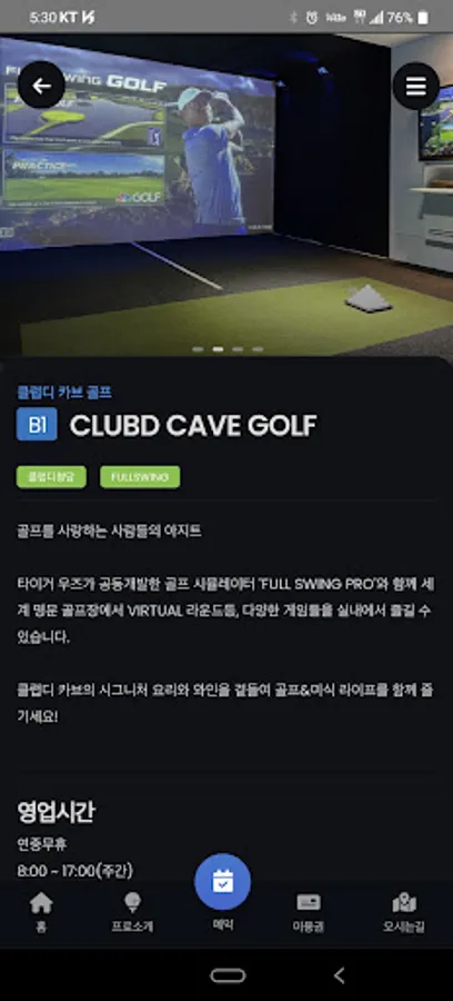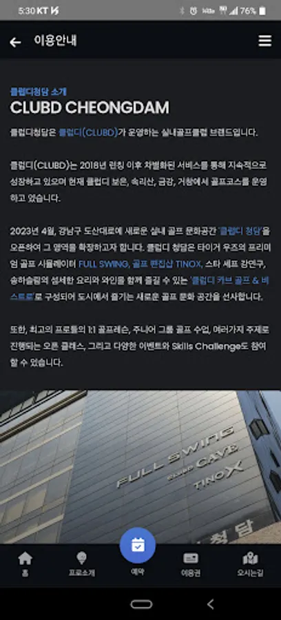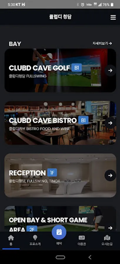Club D Cheongdam is a Golf & Bistro reservation system that allows you to check at a glance the status of available rooms/bays and professional golfers for the date and time you want, and makes reservations easily through ticket purchase and credit card.