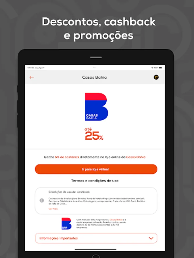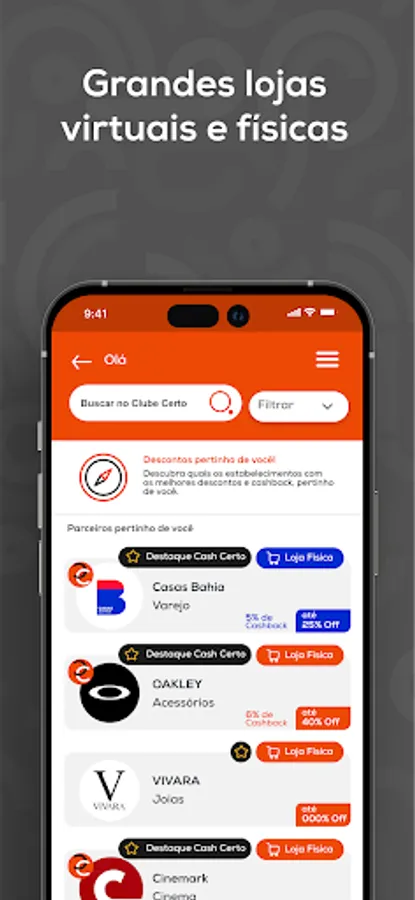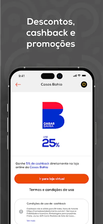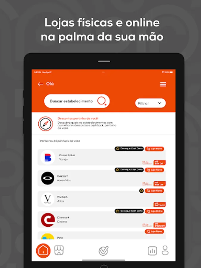 Enjoy exclusive discounts and cashback at more than 30 thousand establishments across Brazil.