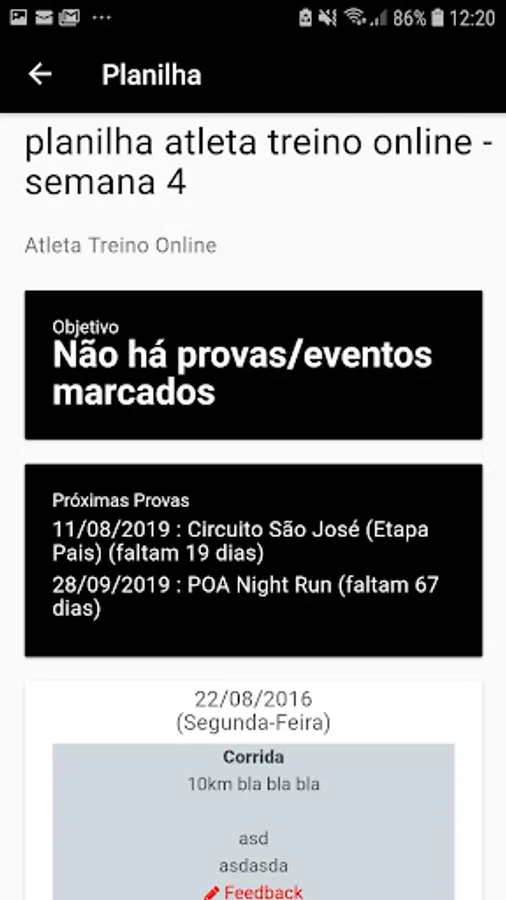 Exclusive app for Floow Sports Advisory Club students who receive their trainings, calendar, notices, messages and tips from coaches, as well as record their training results and tests.