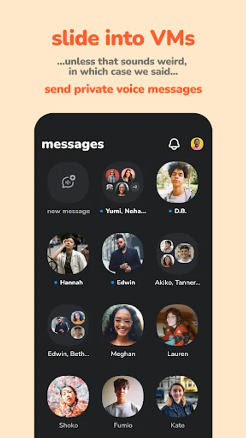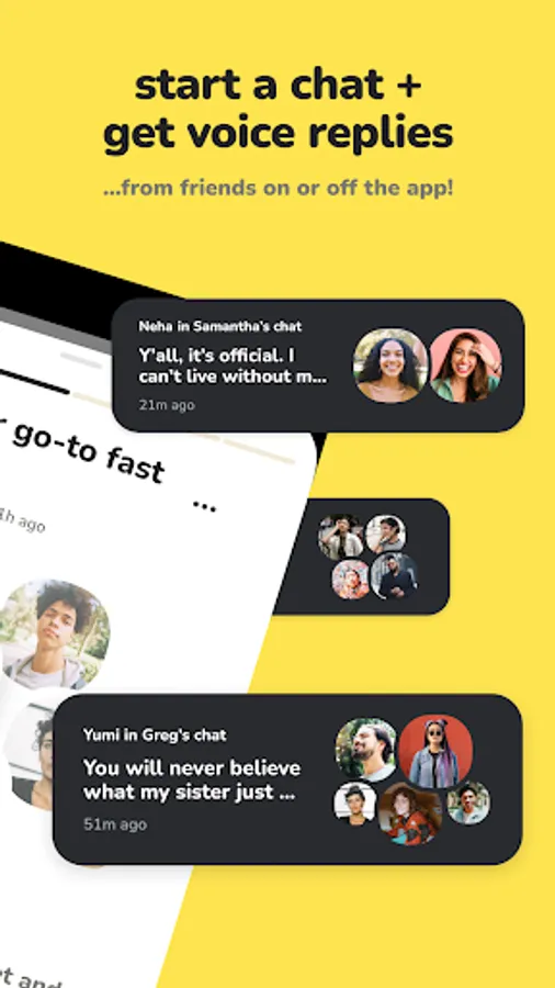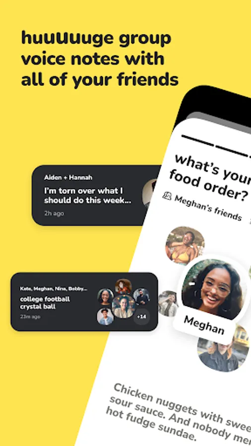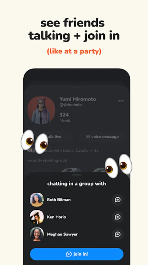It’s just voice. No follower counts or random people. Only your friends and their friends, in a place where you can all be yourselves and hang out like you do in real life.
