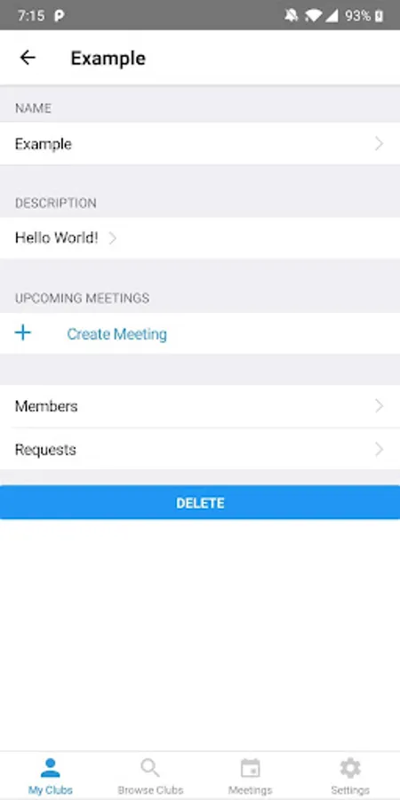ClubHub is a mobile app that allows you to browse the various clubs at your high school and join them to view any upcoming meetings. Users can sign up and enter the name of their school to be able to browse all of the clubs other users at the school have created. Users can request to join clubs and once they are accepted by officers, they have the ability to view upcoming meetings and receive reminder notifications about them.