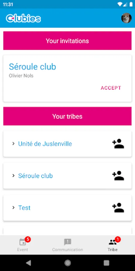 Clubies is a web portal and an app capable of organizing events in your tribe. Young and old.