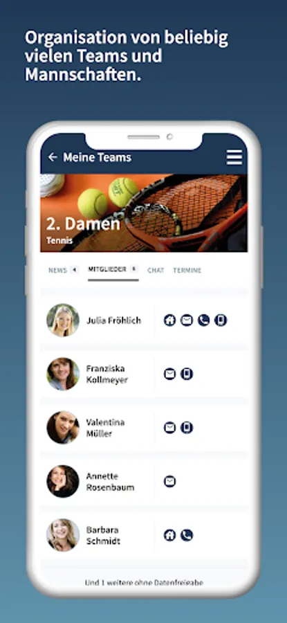 - Data sharing: Decide for yourself which of your communication and contact details you want to share with other members of your team.