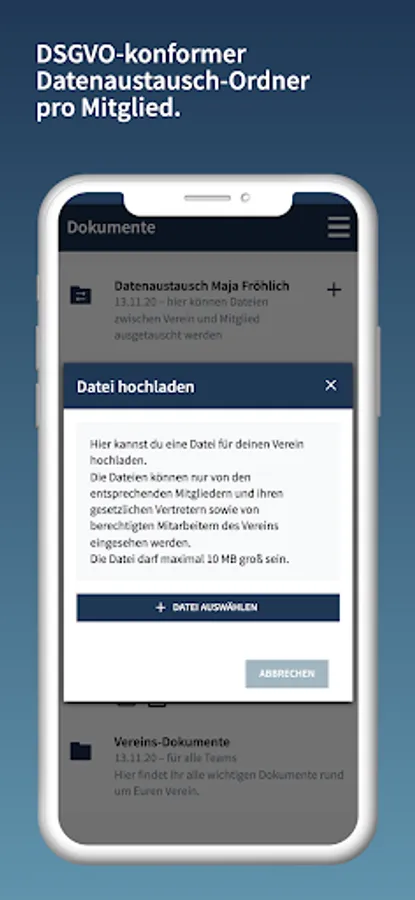 - Upload of documents: Upload important documents, such as certificates or other documents, in a way that complies with data protection requirements and is easy and safe via the app to SVB.