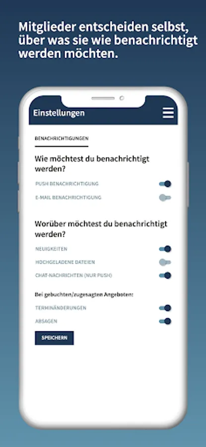- Notification options: Here you can decide which content you want to be notified of by SVB and how (via push message or email).