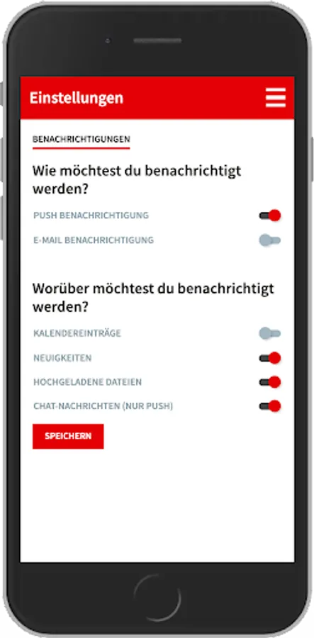 - Notification options: Here you can decide which content you would like to be notified of by your club and how (by push message or email).