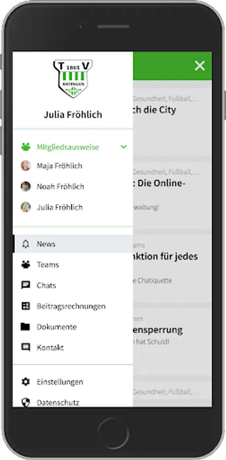 - Digital membership card: Forgot your membership card? If you have your mobile phone with you, you always have your own digital membership card with you in the app - and of course the underage children assigned by you as well.