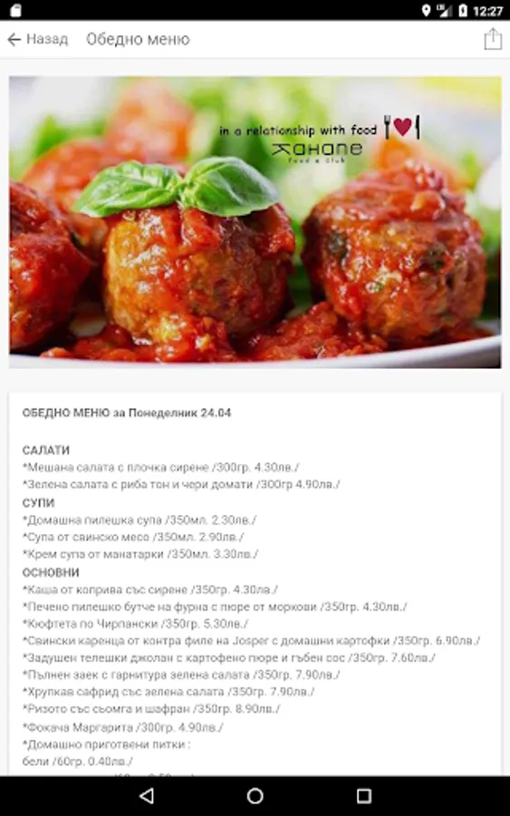 With the mobile application of Canape food # club would you informed daily lunch menu for the restaurant, events and star appearances at the club. You can use it for quick booking and delivery.