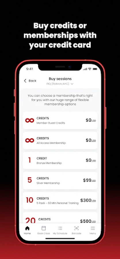 - Adding credits directly through the app which you can use for classes, or other sessions your club offers