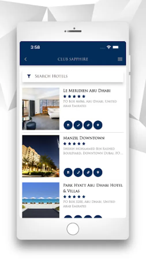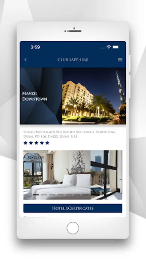 As a member of Club Sapphire, this application provides you detailed information about selected hotels in UAE, and the exclusive discounts and benefits you can enjoy during your visits at selected hotels.