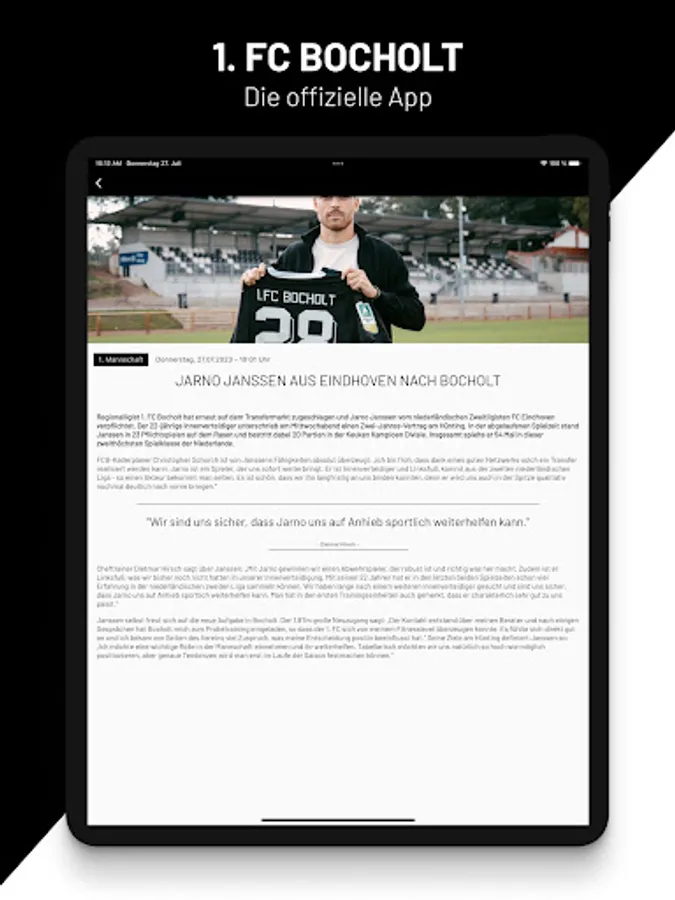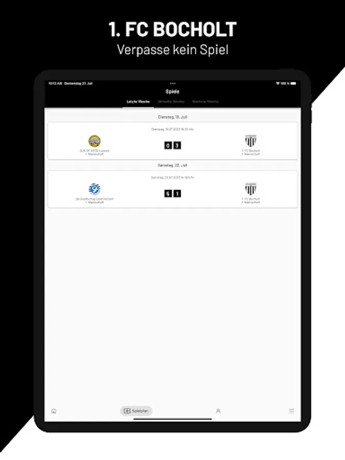 The official app of 1. FC Bocholt 1900 e.V. informs you about current content.