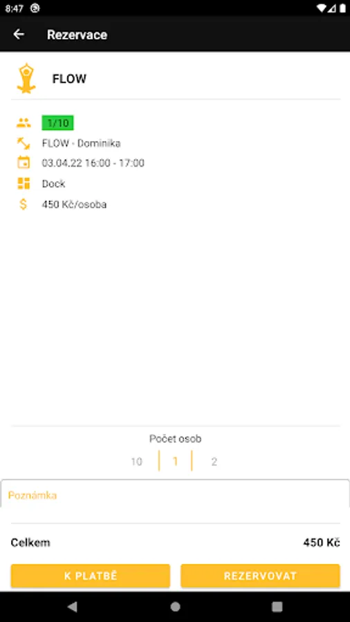 In the application, the client will see the status of his account, can book a group lesson or purchase the offered services.