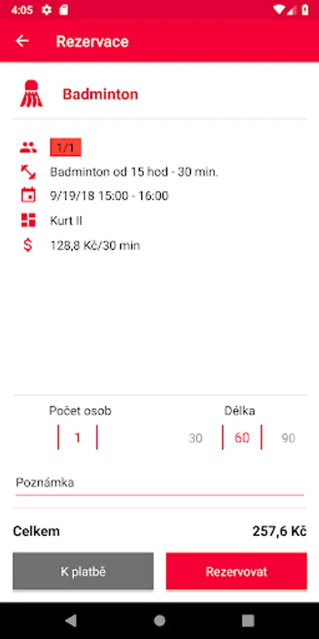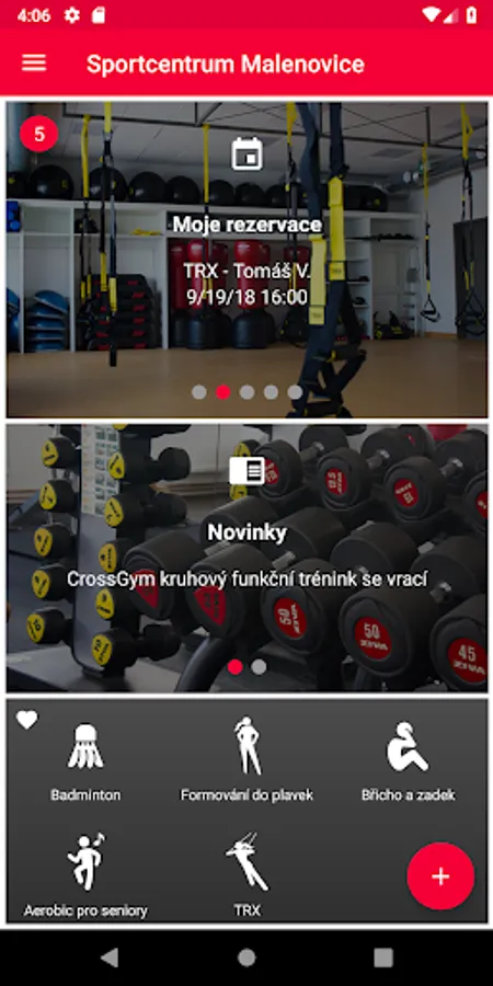 The application allows club clients to book group lessons (eg yoga, barefoot, TRX, round-the-clock training, fitness box, pump, cardiobox, dance aerobics, motion activities for children and others) and ball sports - badminton, squash and table tennis. It also allows online purchase of deposits, permanent and fitness and wellness memberships. The news of the sport center is displayed. The client has access to his / her account to gain an overview of his / her reservations, membership, and passports. Sportcentrum Malenovice offers all-round sports and relaxation opportunities. It offers a well-equipped gym, a CrossGym gym, a wellness area (hydromassage bath, two saunas, an outdoor cooling pool, a Kneipp walkway, a relaxation room), a solarium, a Race Walker Hall, a group exercise room, two badminton courts, one squash court and table tennis . We perform Body Diagnostics on InBody 230. Muay Thai lessons are also underway in the building. The sports center also has a restaurant with outdoor covered seating and two lounges for private events - daily menu, permanent menu, pizza.