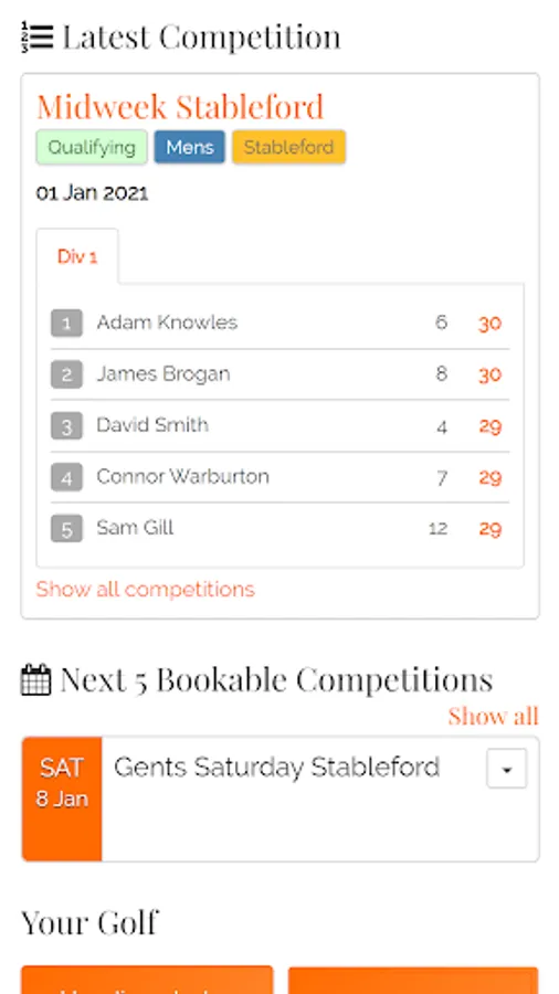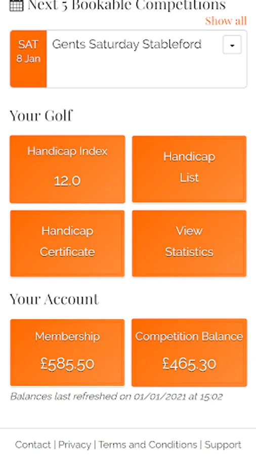 - View your golfing stats and handicap certificate**