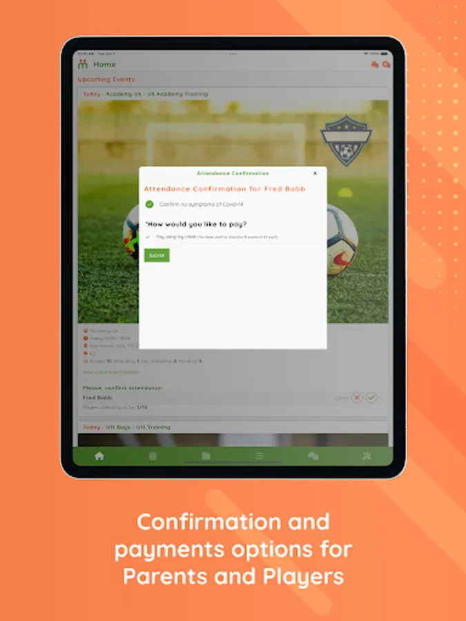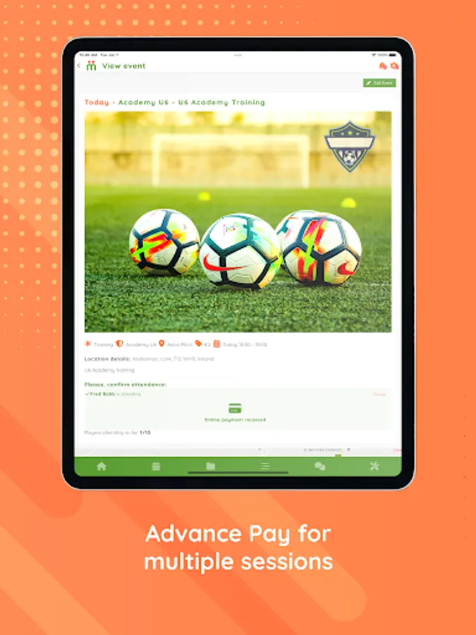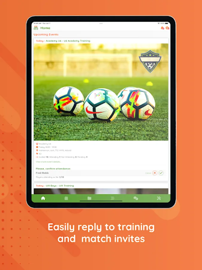 Coaches can schedule recurring training for their team allowing the automation of training invites direct to the ClubTeam App. Parents and Players can choose to Quickpay for multiple sessions, confirm or decline attendance and coaches keep a perfect record of player attendance. The future of hassle free training has arrived.