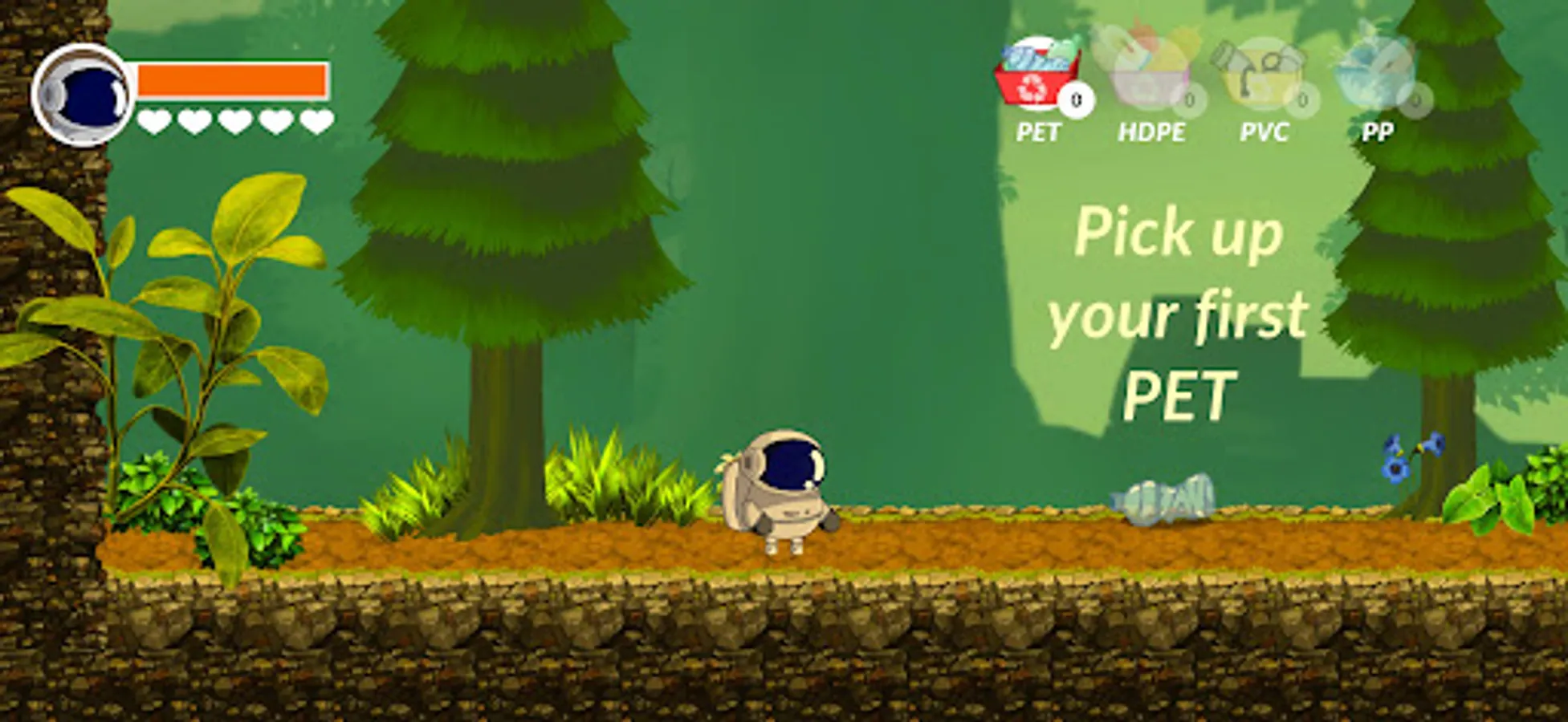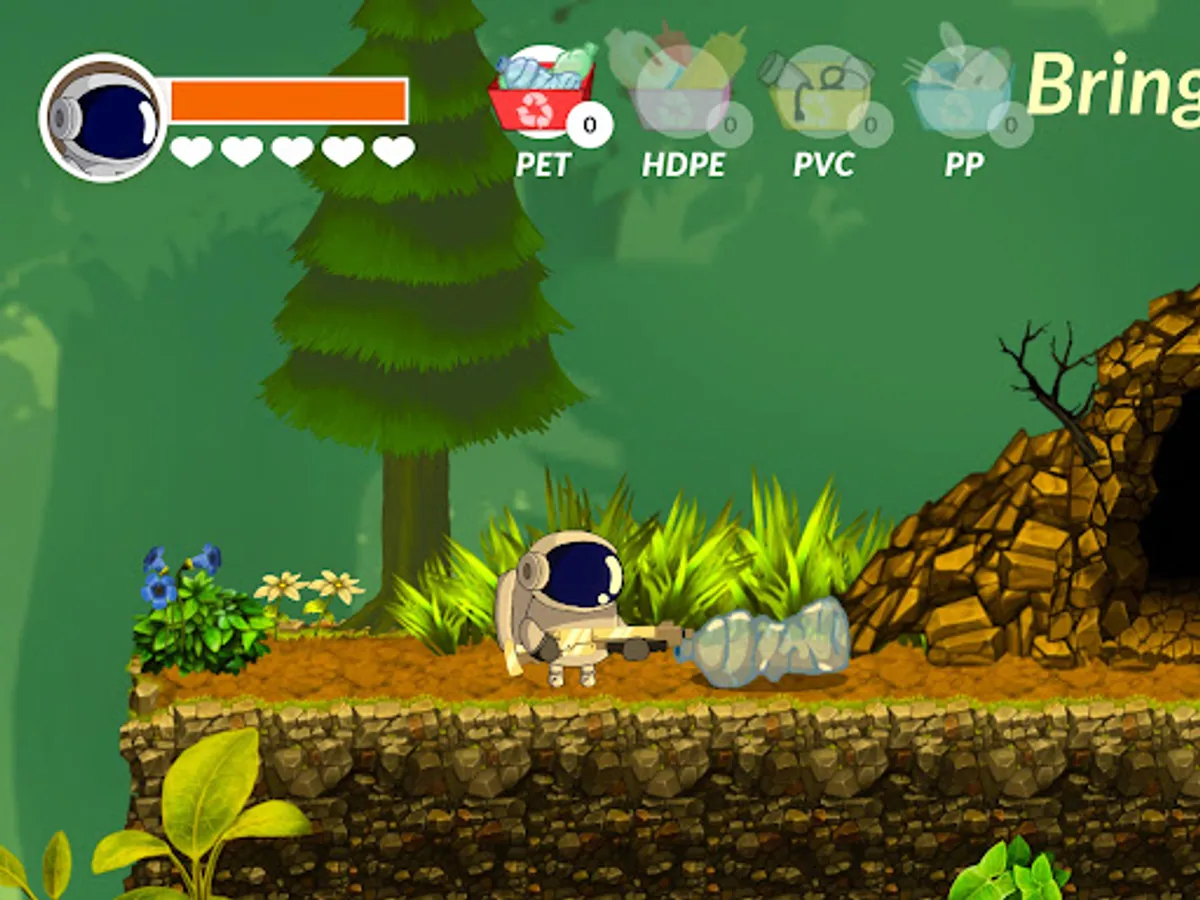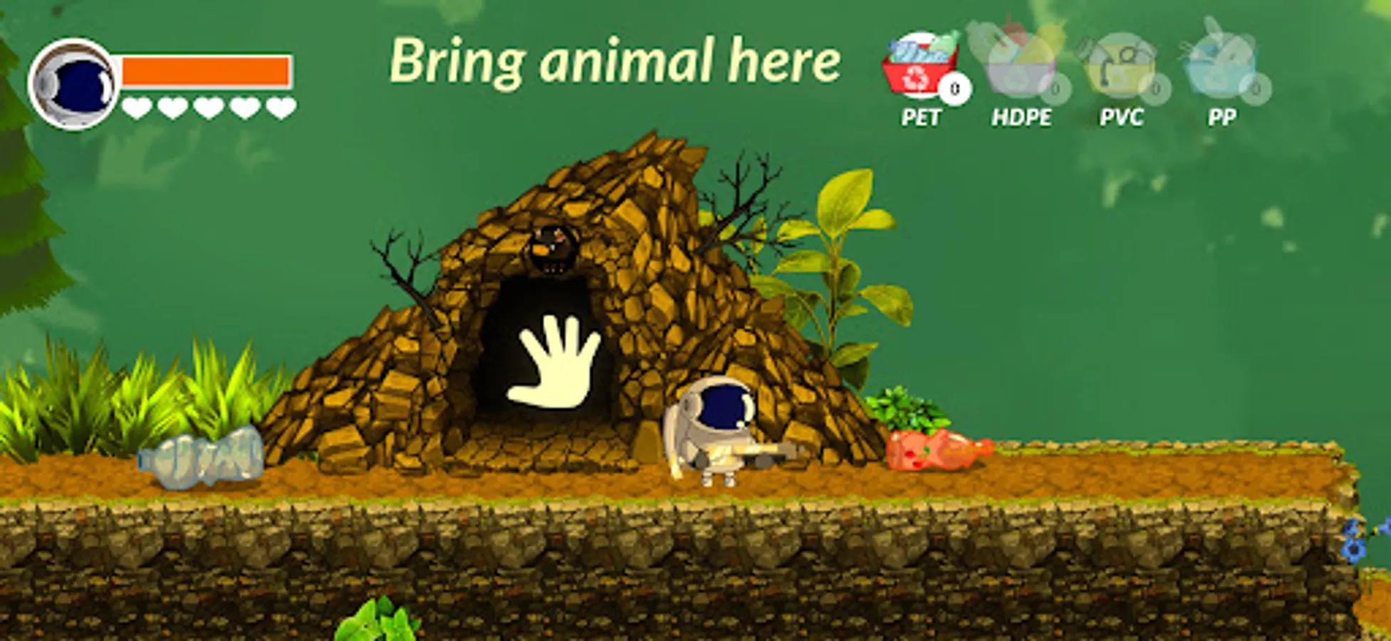 The main character's mission is clear: to collect the plastic waste, as much as he/she can, so that animals can live on Earth again.