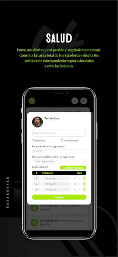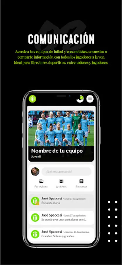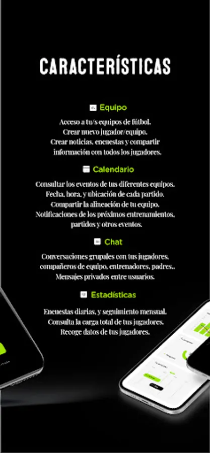 Coach: Manage and take control of your team. Save time and keep track of your players daily. Avoid answering WhatsApp minutes before training or games. Improve communication with your players and control the loads of your training sessions based on the physical condition of the team. Share unlimited videos, photos and documents with your players to prepare for training sessions and games.