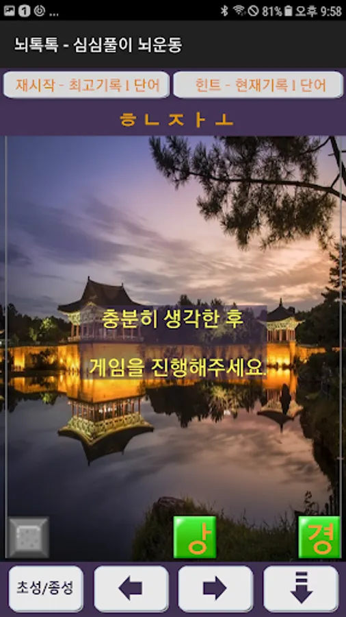 This game aims to match the original words before disassembling like a game of games, by disassembling the letters that make up Korean words and presenting them in a sequential order.