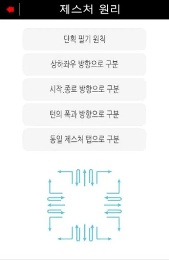 필기방향이 상하좌우로만 구성되어 서로 혼동될 일이 없음. 따라서 정확한 입력 가능