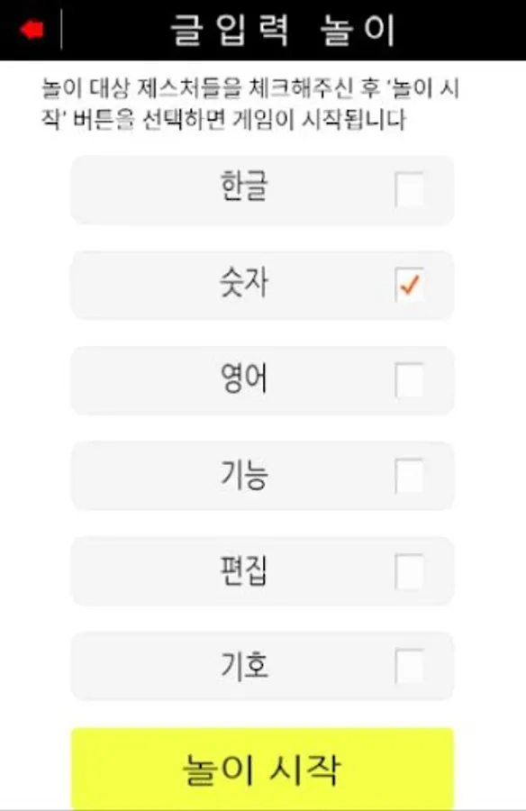 즐기며 습득할 수 있도록 연습 게임도 제공