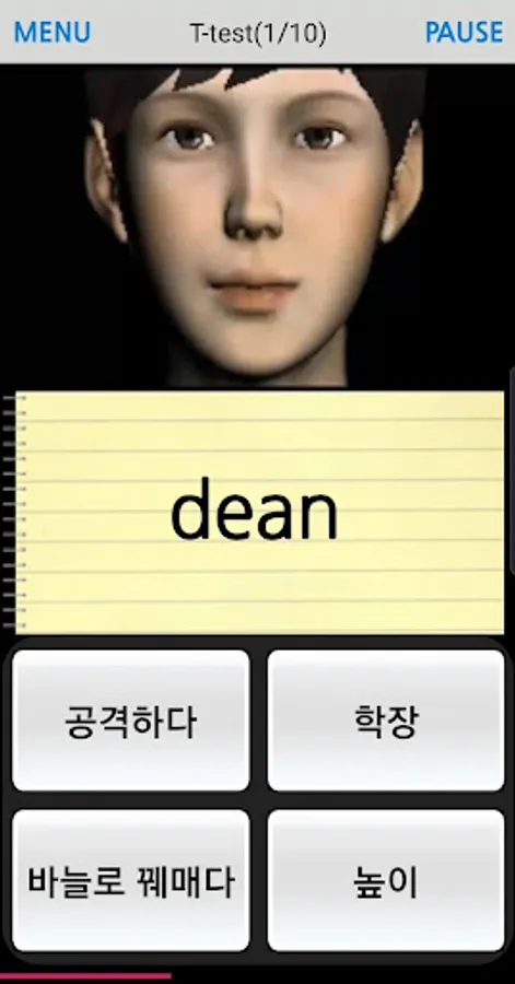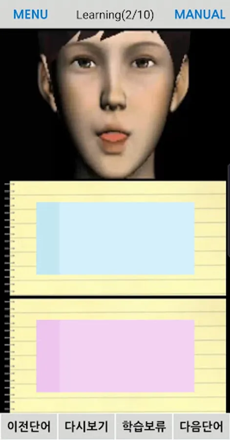 When learning begins, a native speaker's voice and pronunciation engine animation is presented for each word.