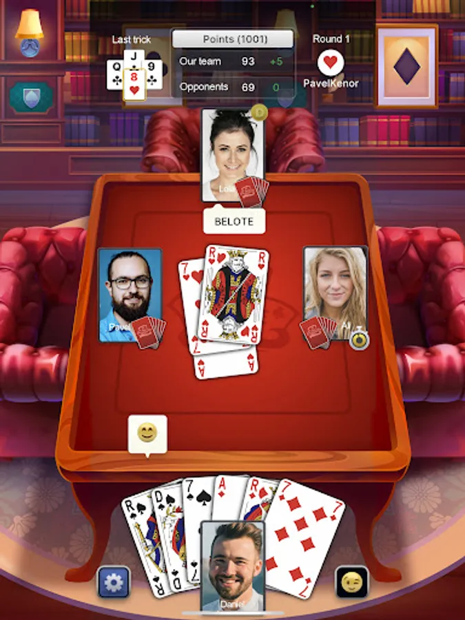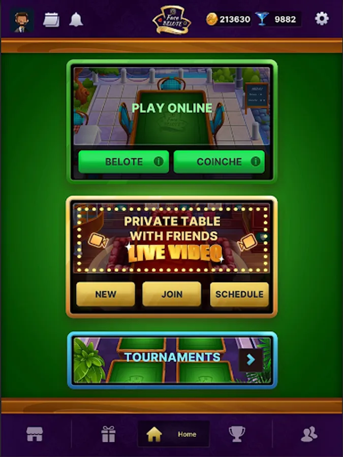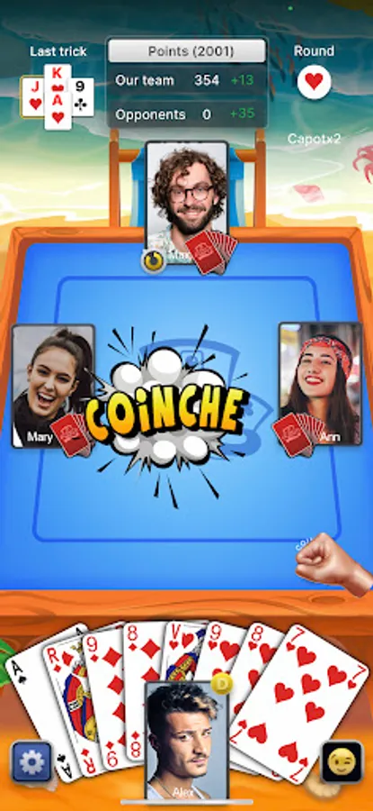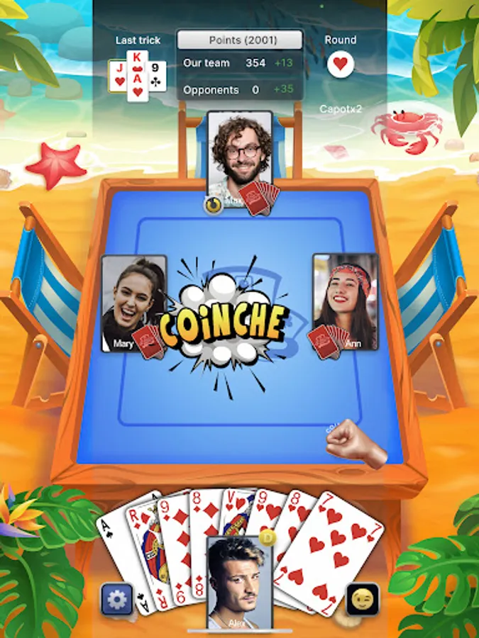 For the 1st time, play Belote or Coinche as in real life, thanks to live video and audio.