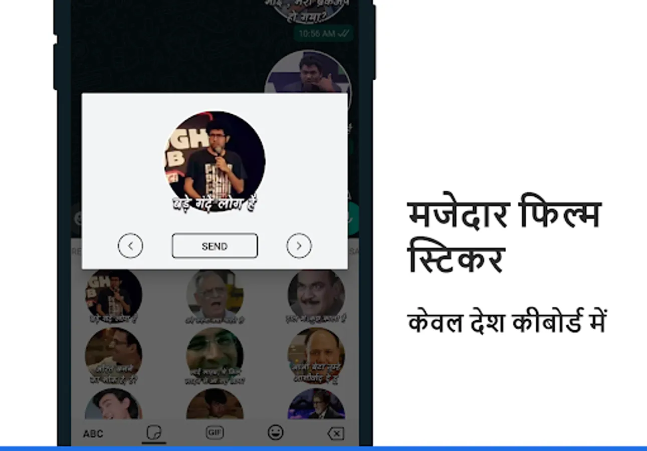 - For fun stickers, click the button on top left side of the keyboard. Make conversations more amazing with dialogues from Hindi movies, TV shows and more.