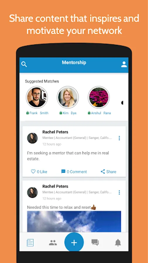 Mentorship opens the door for mentees to confidently reach out to mentors and build a solid relationship. Being a mentor is admirable and vital. Sharing one's valuable knowledge and experience can help mold the next generation to be successful. We bring professional and personal interests together, helping make connections stronger and allowing communication to flow. Communication is important to us at Mentorship, we encourage every user to connect, chat, and post motivating and inspirational content. Search for mentors or mentees locally or far away. Giving a little of your time can go a long way. Let’s make a difference!