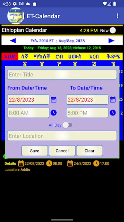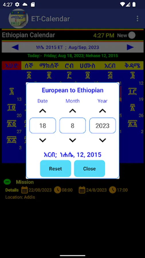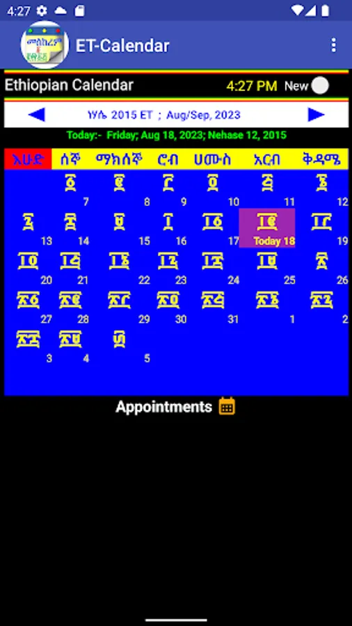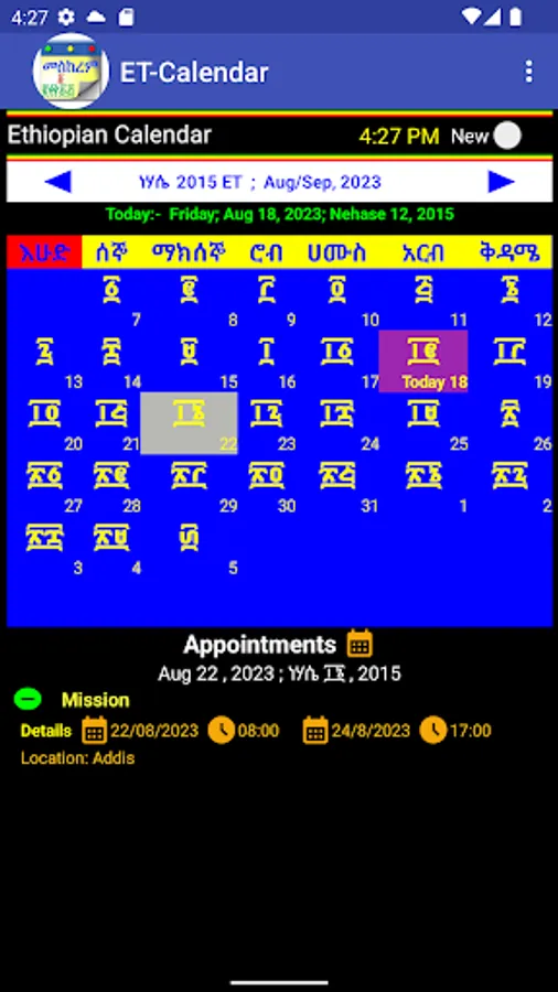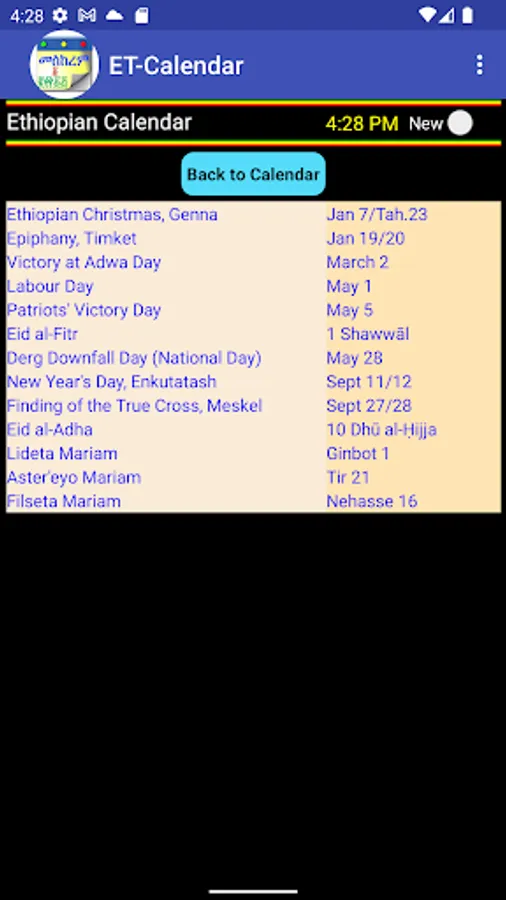 Can be used to show the Ethiopian Calendar. You don't need Amharic Fonts on your devise.