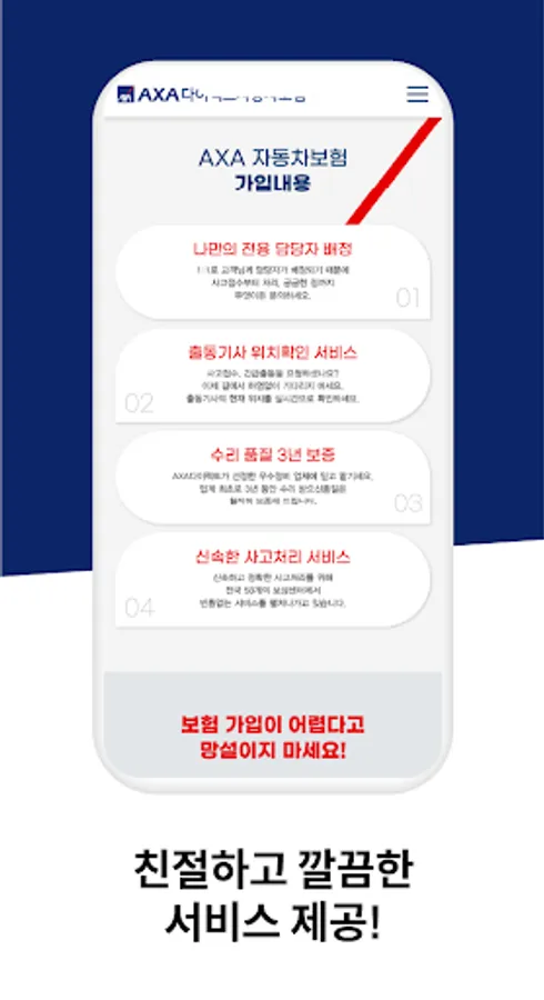Calculate my car insurance premium, check it now with the Aksa Direct car insurance app. With a smartphone application, you can calculate insurance premiums and sign up for insurance at once. AXA Direct Auto Insurance app's various special contract benefits make insurance premiums affordable! Check out the services provided by the AXA Direct Auto Insurance application right now.