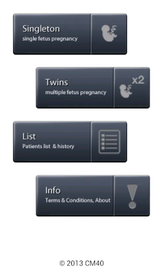 FETAL GROWTH app is provided “As Is”' without any express or implied warranty of any kind. CM40 does not warrant or assume responsibility for the accuracy or completeness of any information, text, graphics, links or other items contained within the app. Moreover, the app does not possess any approval nor clearance from any health service, institution, or agency. The app is not intended to diagnose, treat, cure or prevent any disease. CM40 cannot accept responsibility for any clinical diagnoses or decisions made on the basis of the FETAL GROWTH app.