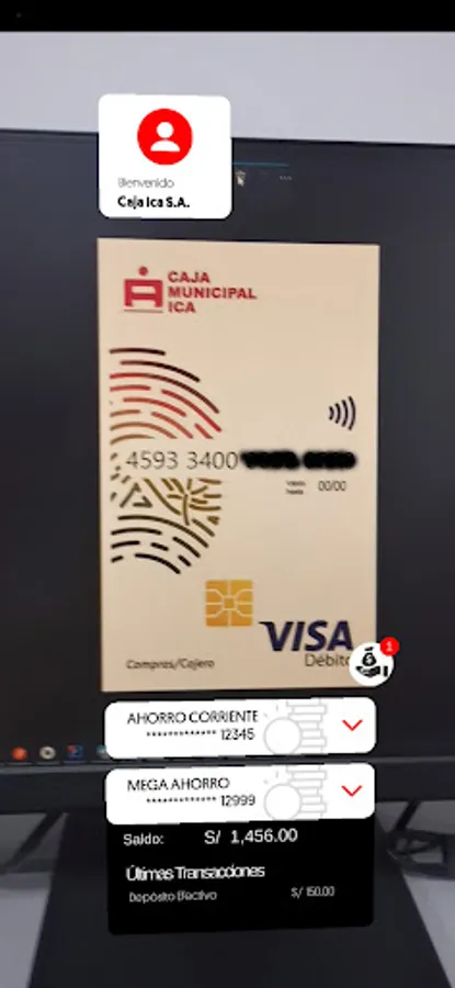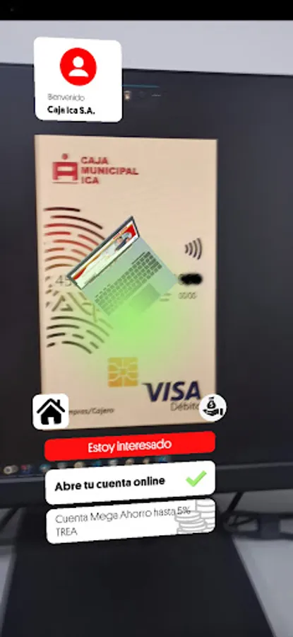 Augmented Reality application for Caja Ica customers in which you can check your accounts and access exclusive promotions by scanning your debit card.