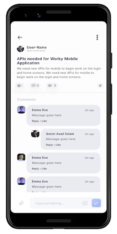 Communicate with other team members at your own time. Unlike other major platforms, Worky does not required teams to be online at the same time to communicate effectively. You wont miss out on anything if you are not online.