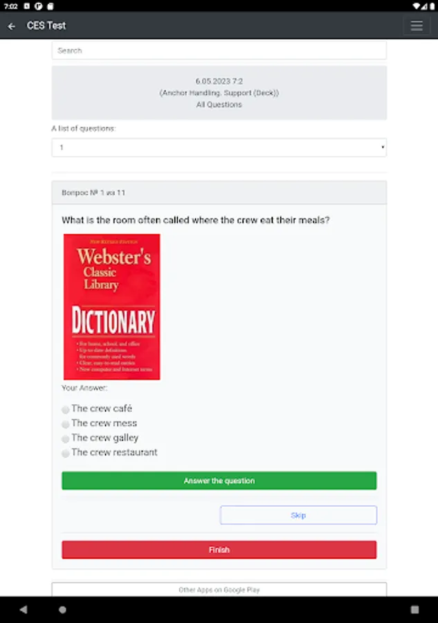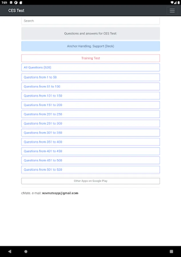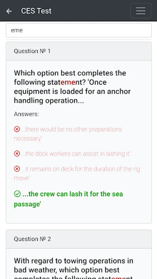 The application contains 520 questions on the topic: Anchor Handling. Support (Deck). The application is equipped with a convenient search.