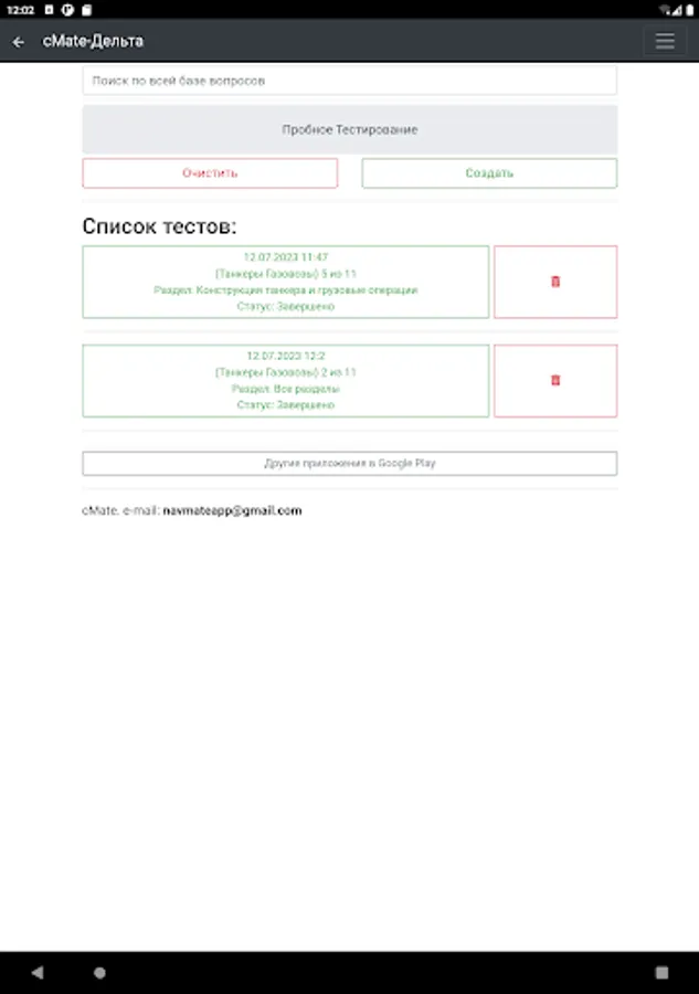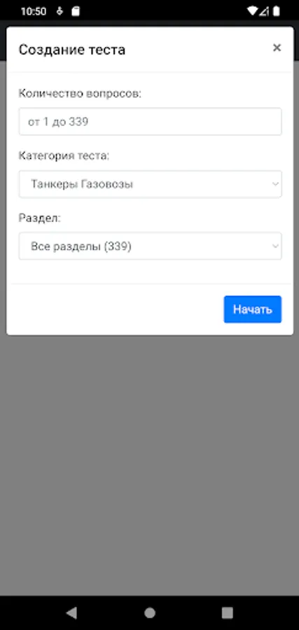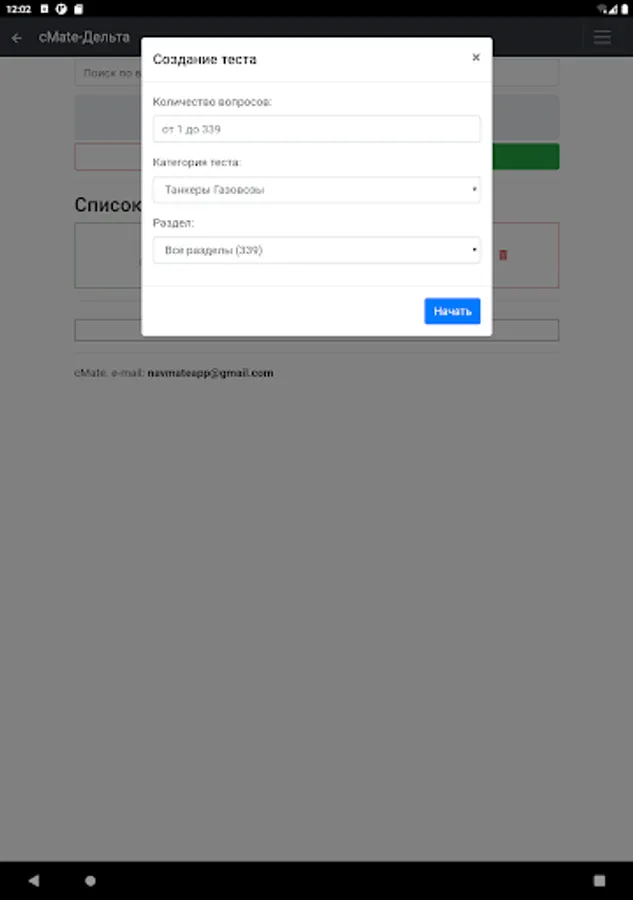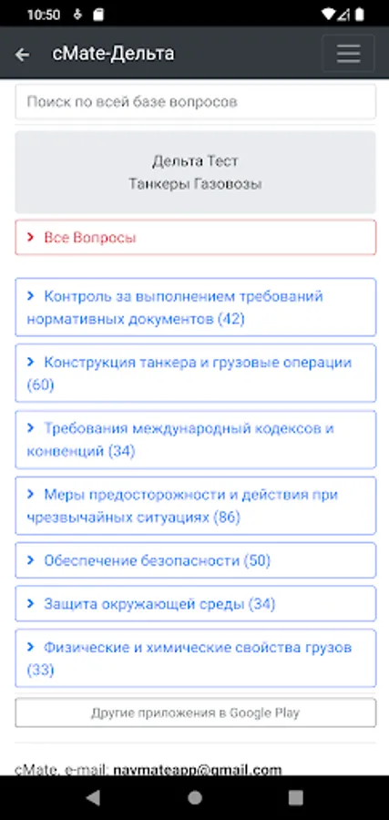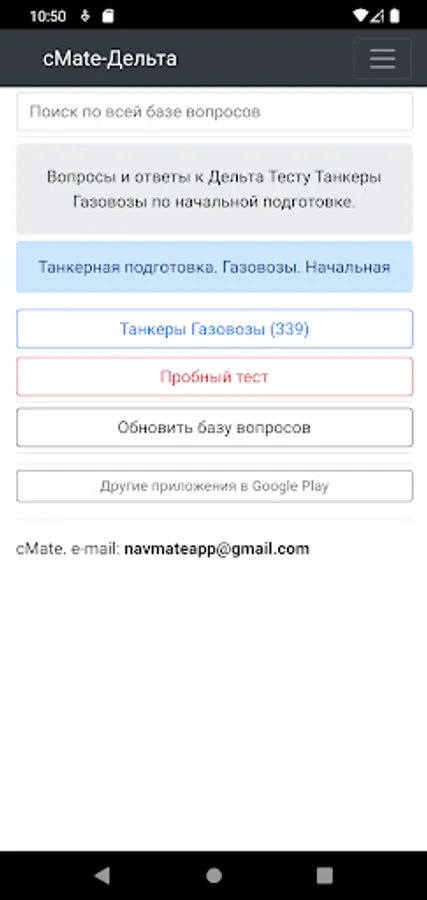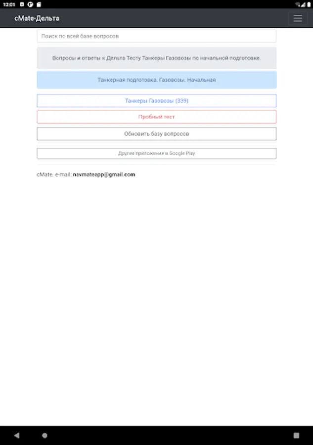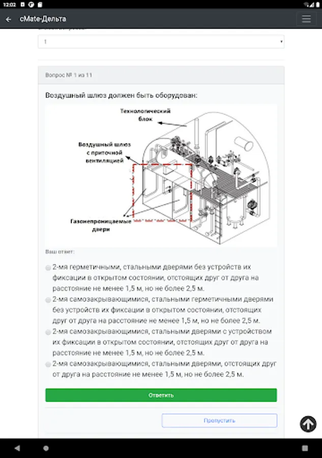 The application is designed to test the knowledge of crew members of ships. Specialists in carrying out cargo operations on gas carriers with initial training