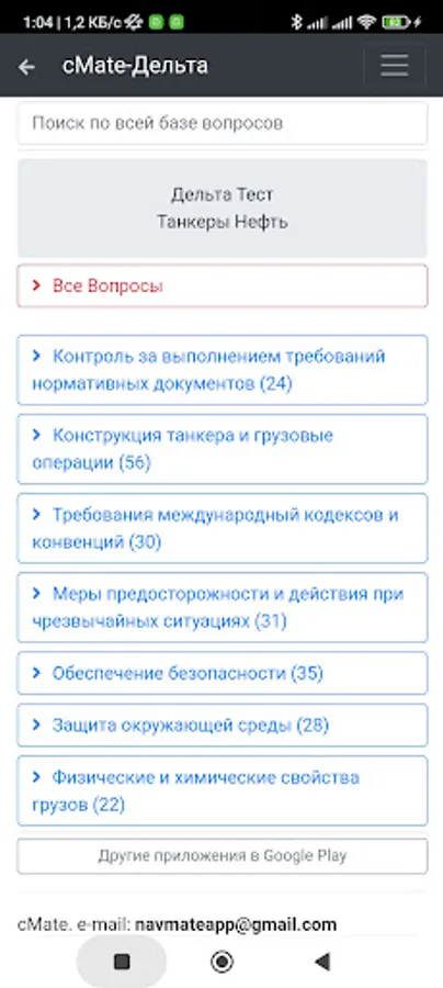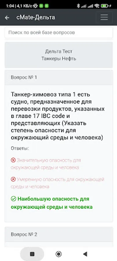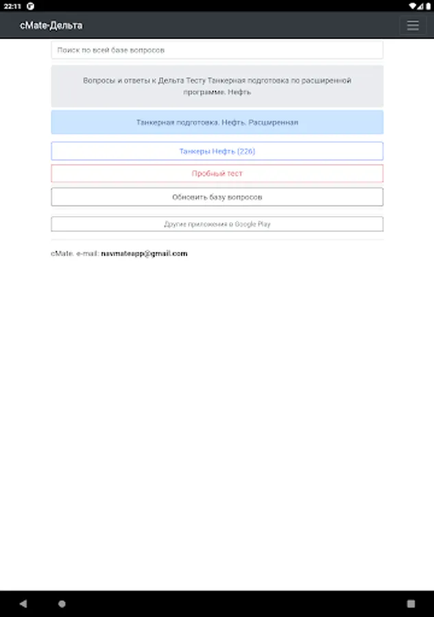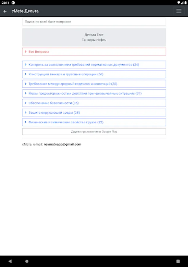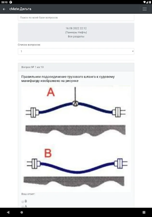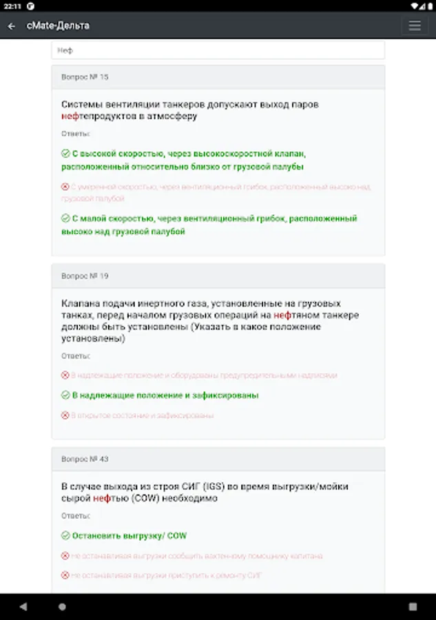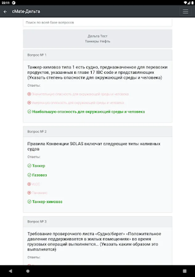 The application is designed to test the knowledge of crew members of ships. Specialists in carrying out cargo operations on oil tankers with advanced training