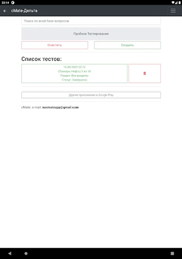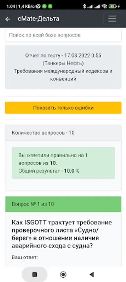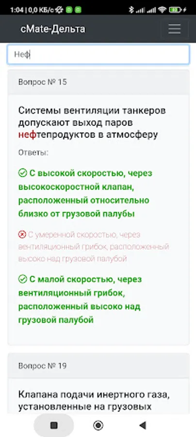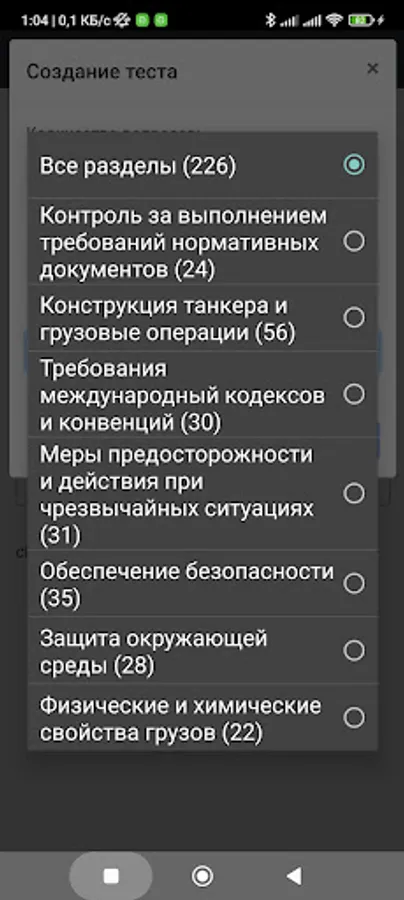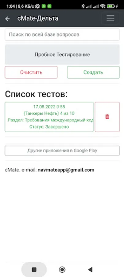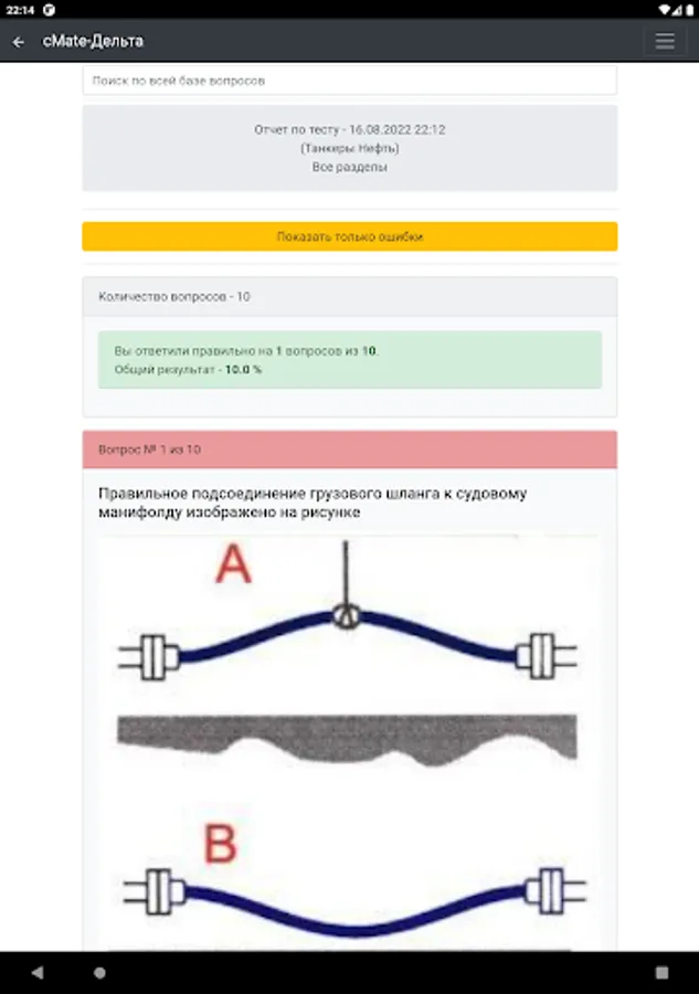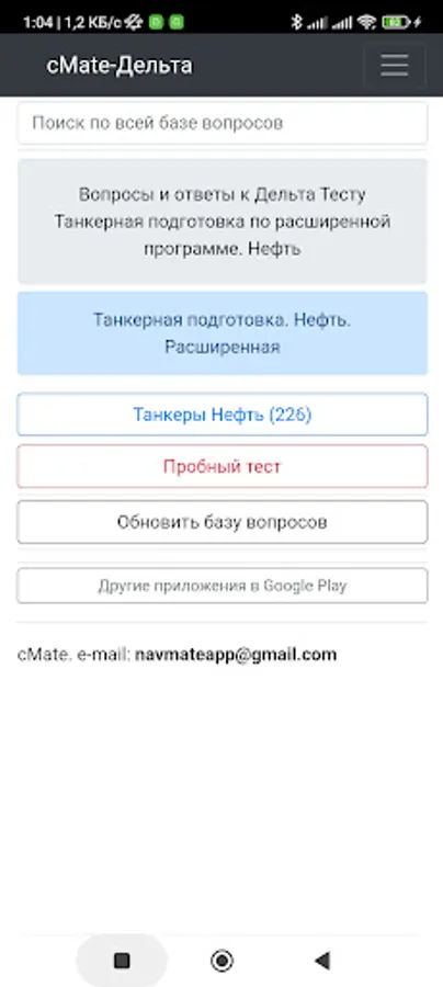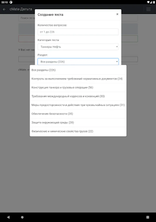 The application is designed to test the knowledge of crew members of ships. Specialists in carrying out cargo operations on oil tankers with advanced training