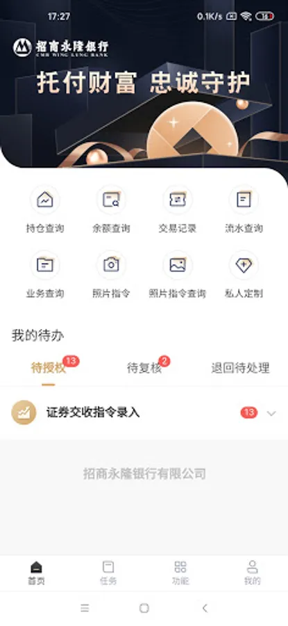 -Real-time account enquiry: view account balance, securities holdings, cash/securities transaction history