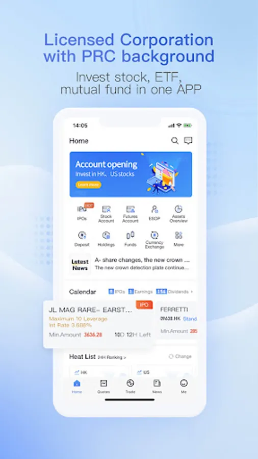 Clients can trade HK stock , China A stock, US stock and mutual fund via Yat Lung Global. This trading application also provides account opening, real-time market data, research reports and the information of roadshows.