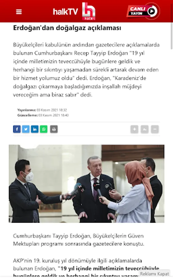 * Live broadcasts of Halk TV and old programs.