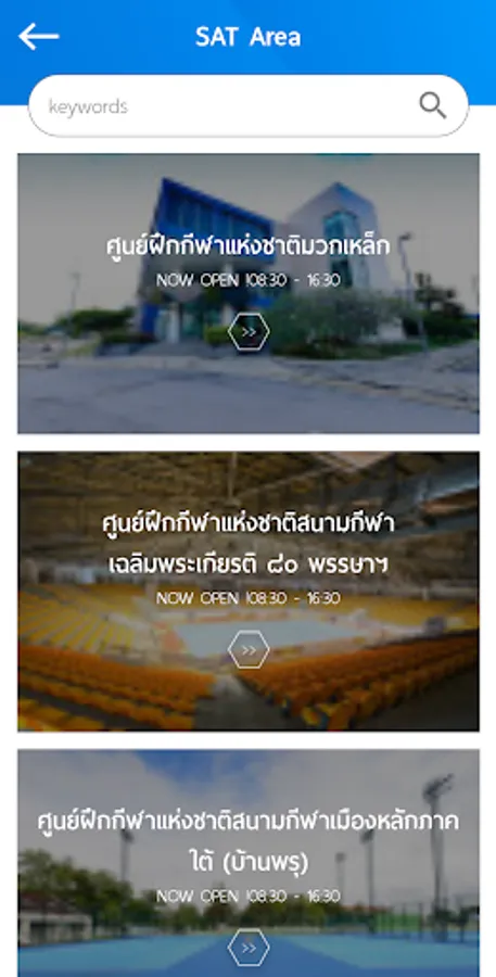 SAT is a mobile application introducing information and services of the National Sports Training Center and sports stadiums in the regional areas under the responsibility of the Sports Authority of Thailand.