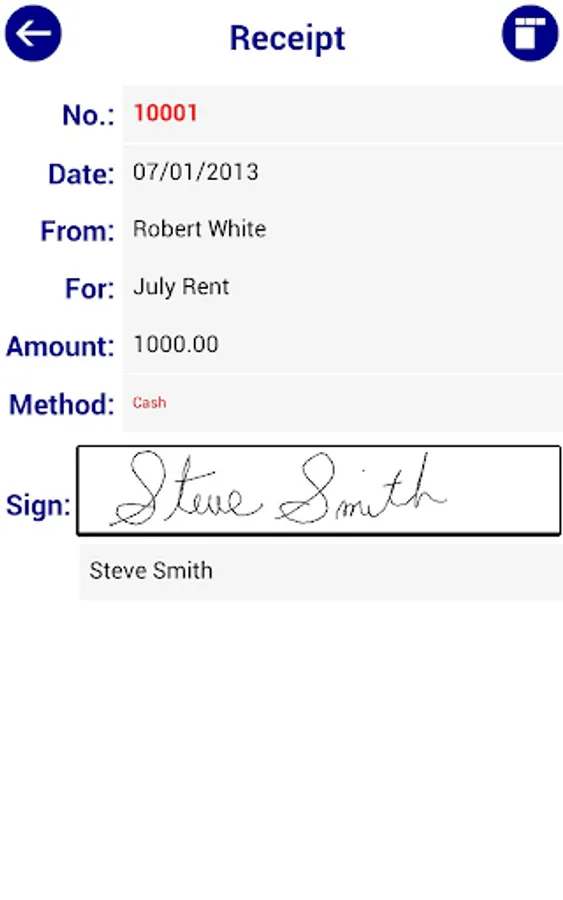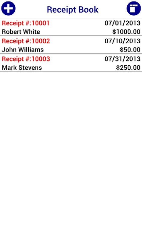 Receipts can be viewed and edited in app.