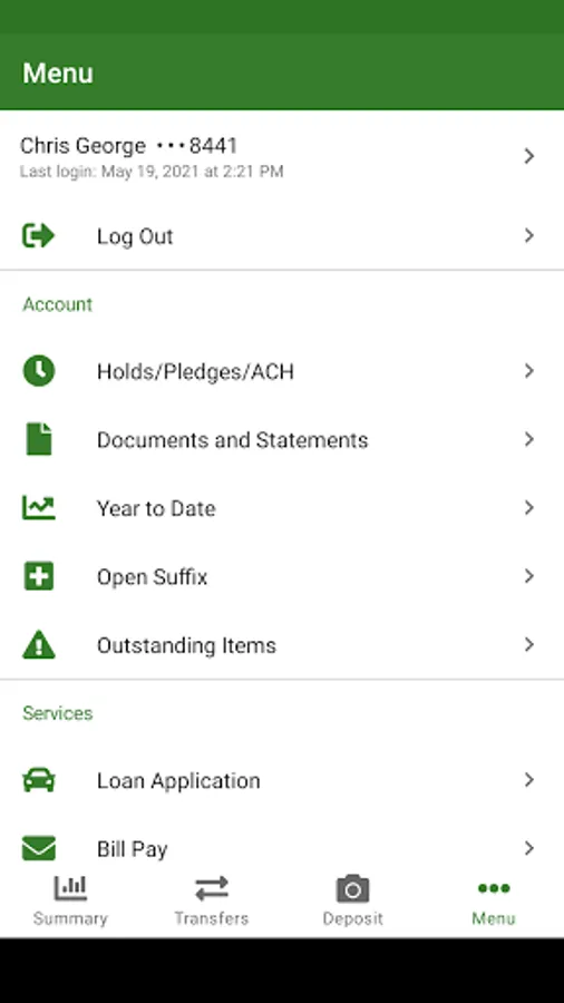 View your account information, locate ATMS, Branches and service centers, and make transfers between accounts!