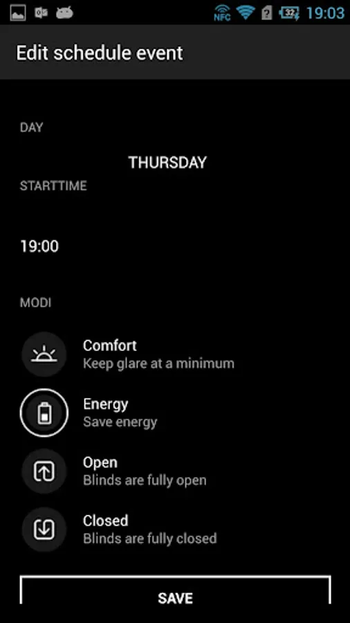 • When the room is occupied blinds are set automatically to suit the actual sun position and your preference to deliver comfort