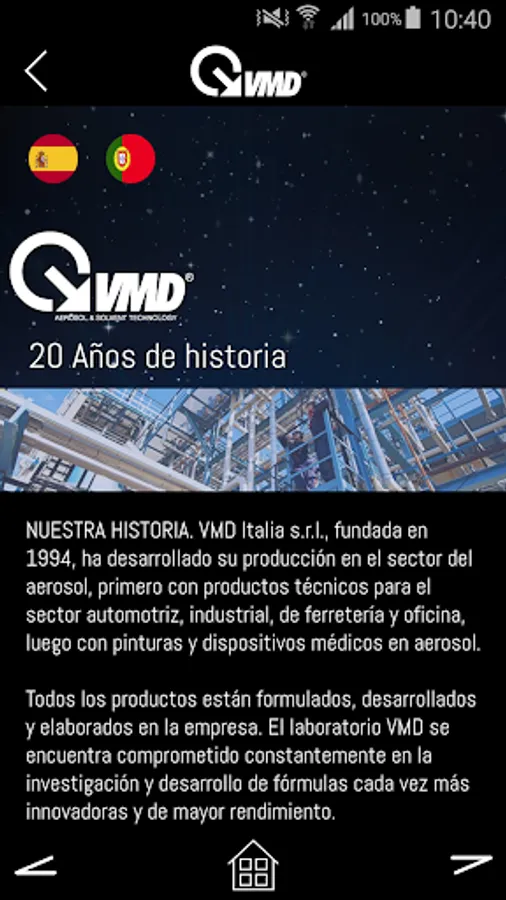 Thanks to an important agreement with Dollmar S.p.A. in 2012, with the aim to consolidate their technical knowledge, VMD is now synonymous with progress, service and quality, and gets to be the leader in the world of aerosols and thinners productive reality.