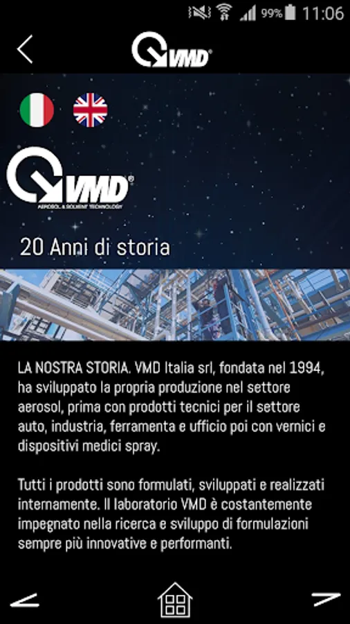 VMD Italy srl, founded in 1994, has developed its own production in the aerosol industry, first with technical products for the automotive industry, industrial, hardware and office then with spray paints and medical devices.