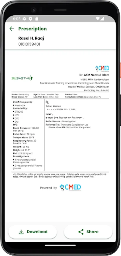 Digital Prescription: Health records, medical advice & prescription in apps, email and in SMS.