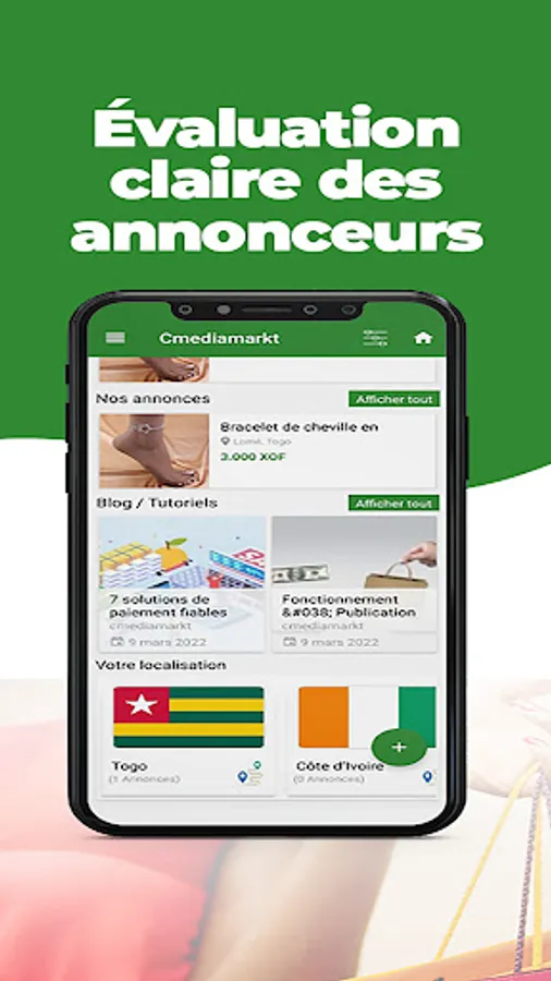 ★ EASY SEARCH WITH GEOGRAPHIC LOCATION: Are you looking for a bike in Lomé or Abidjan? A massage in Mango or Yamoussoukro? A job in Assinie or Aneho? Thanks to the geographical location, see the ads that interest you in the geographical area you want.