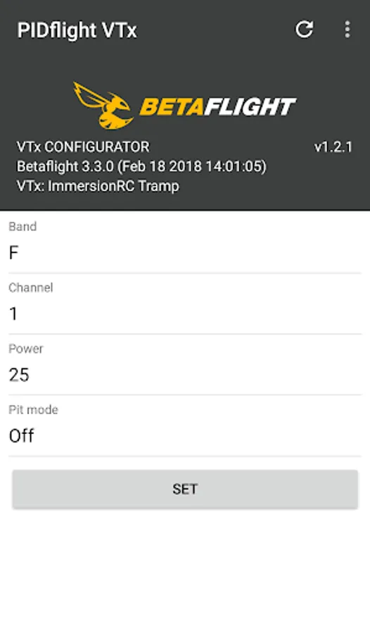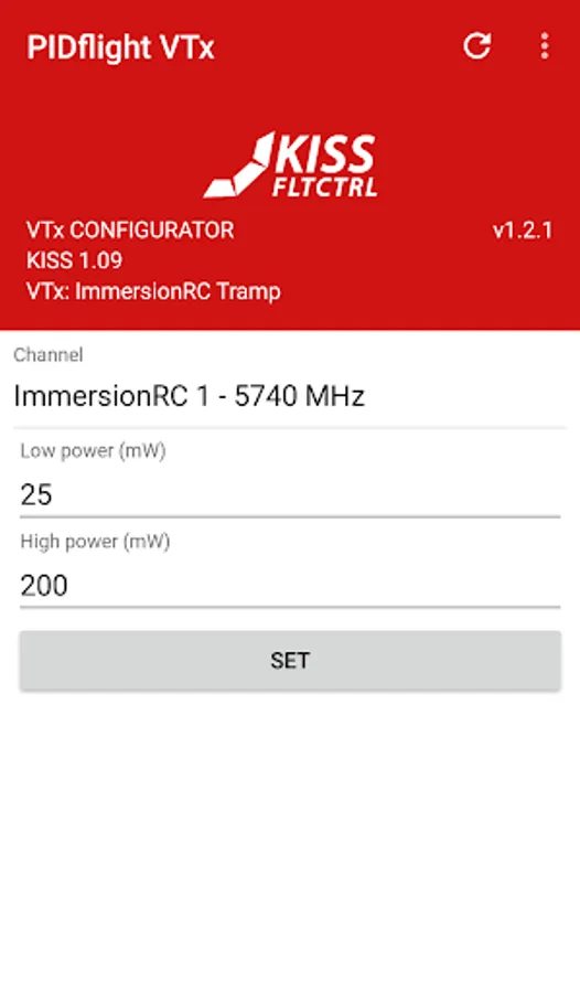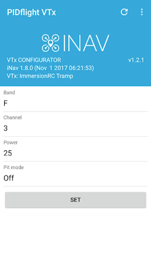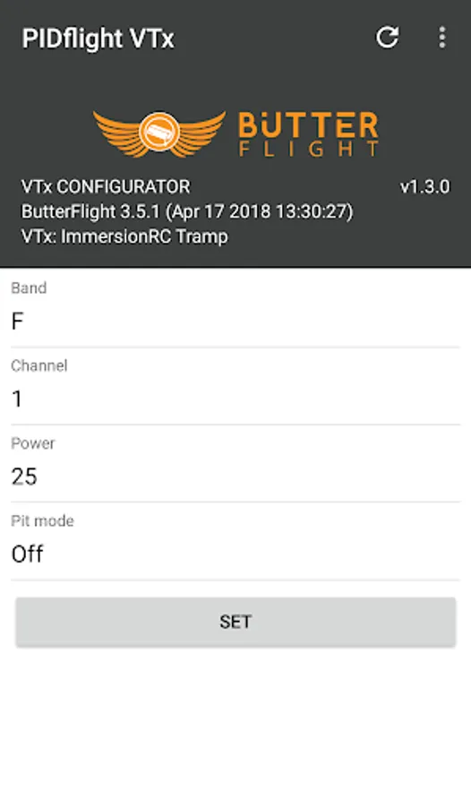 PIDflight VTx provides a simple interface to adjust your TrampHV or TBS Unify Pro video transmitter settings such as band, channel, power and pit mode.