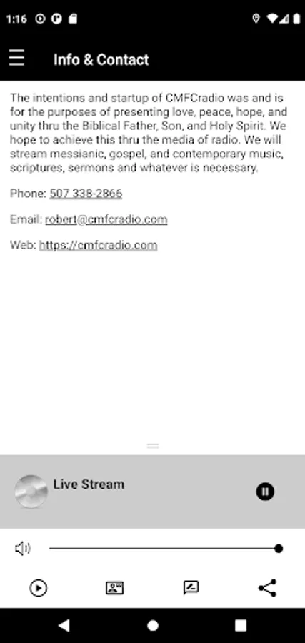Messianic, Gospel, Classic R&B, Ministry, Talk What is CMFC all about? After much deliberation and thought I have come to believe that CMFC is a platform to unite and bring people into unity and one belief based on love, faith, and understanding, as it is written, in unadulterated scriptures KJV. CMFC is a prophetic and missionary platform giving confidence and assurance that we are living in Revelation times. We offer and encourage others to join in with us to be part of the commission giving by Christ, to take the Good News and Gospel to all the world.